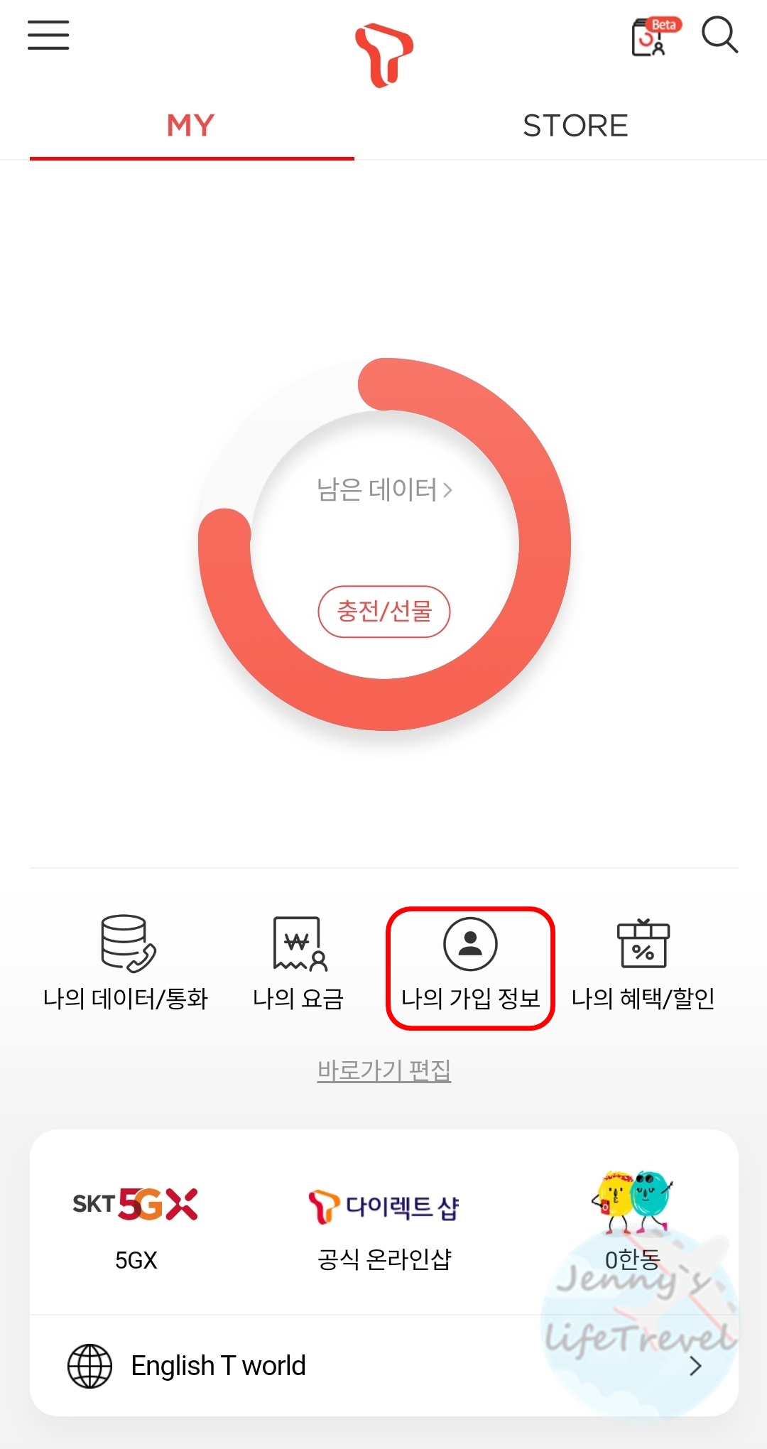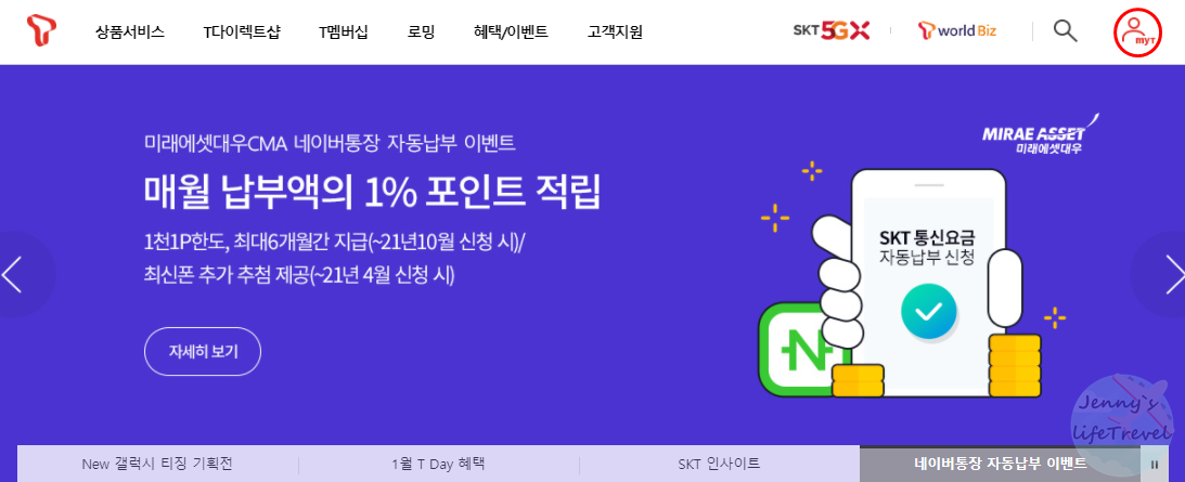 2. 로그인을 한 뒤 오른쪽 상단 my T를 클릭합니다.