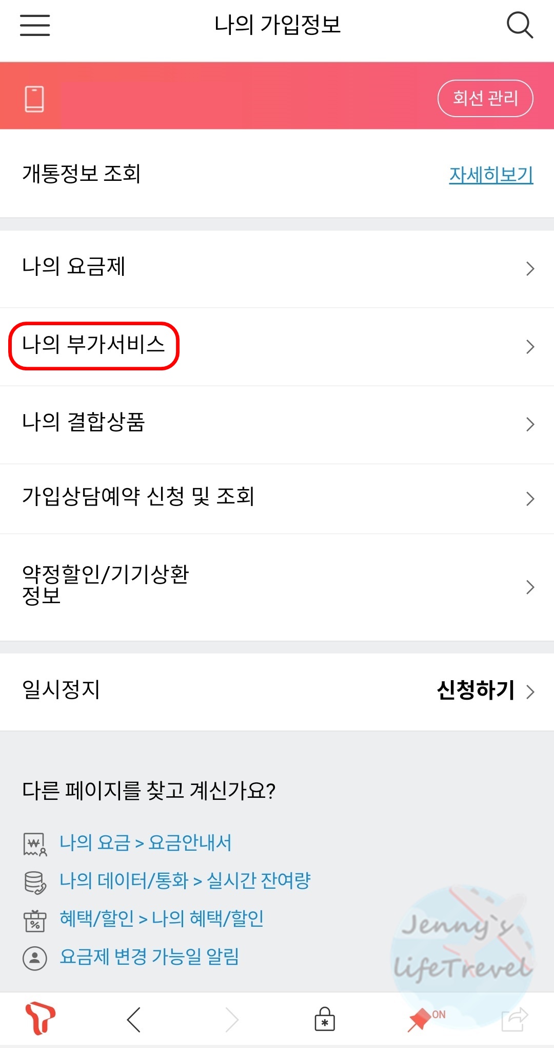 4. 나의 부가서비스를 클릭합니다.