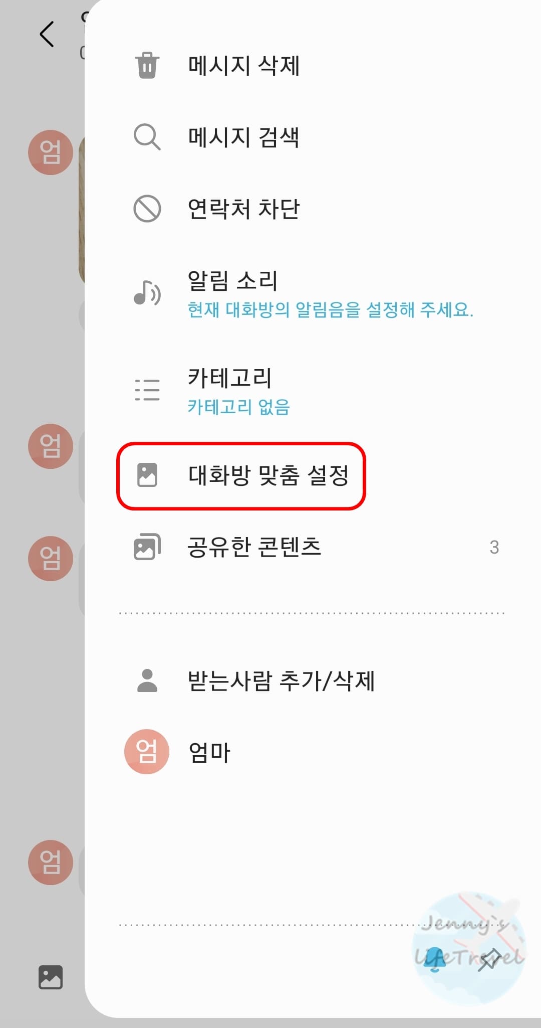 8. 클릭해서 적용하지 않으면 선택된 특정 메시지 방의 배경화면만 변경됩니다.