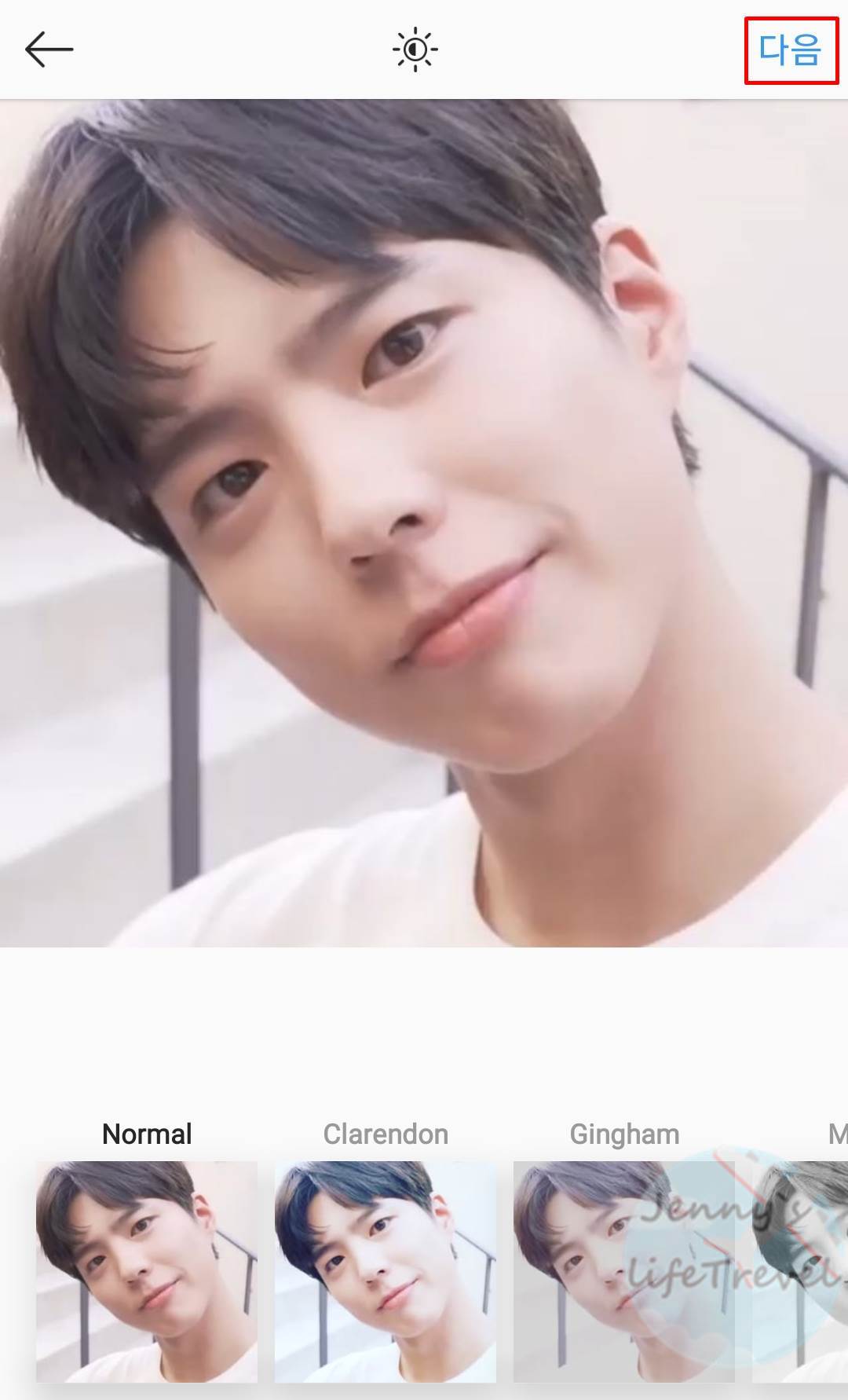 6. 사진 자르기 및 필터 설정 부분은 모두 다음을 눌러 넘겨주시면 됩니다. 인스타 리그램 하는법은 공유의 목적이니 원래 게시되었던 사진을 변경하지 않는 것이 좋습니다.